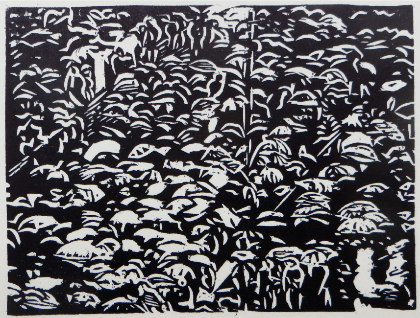 Disasters & Dreams series no 22. Hong Kong Umbrellas 2014 woodcut c 11 x 16 cm edition 30